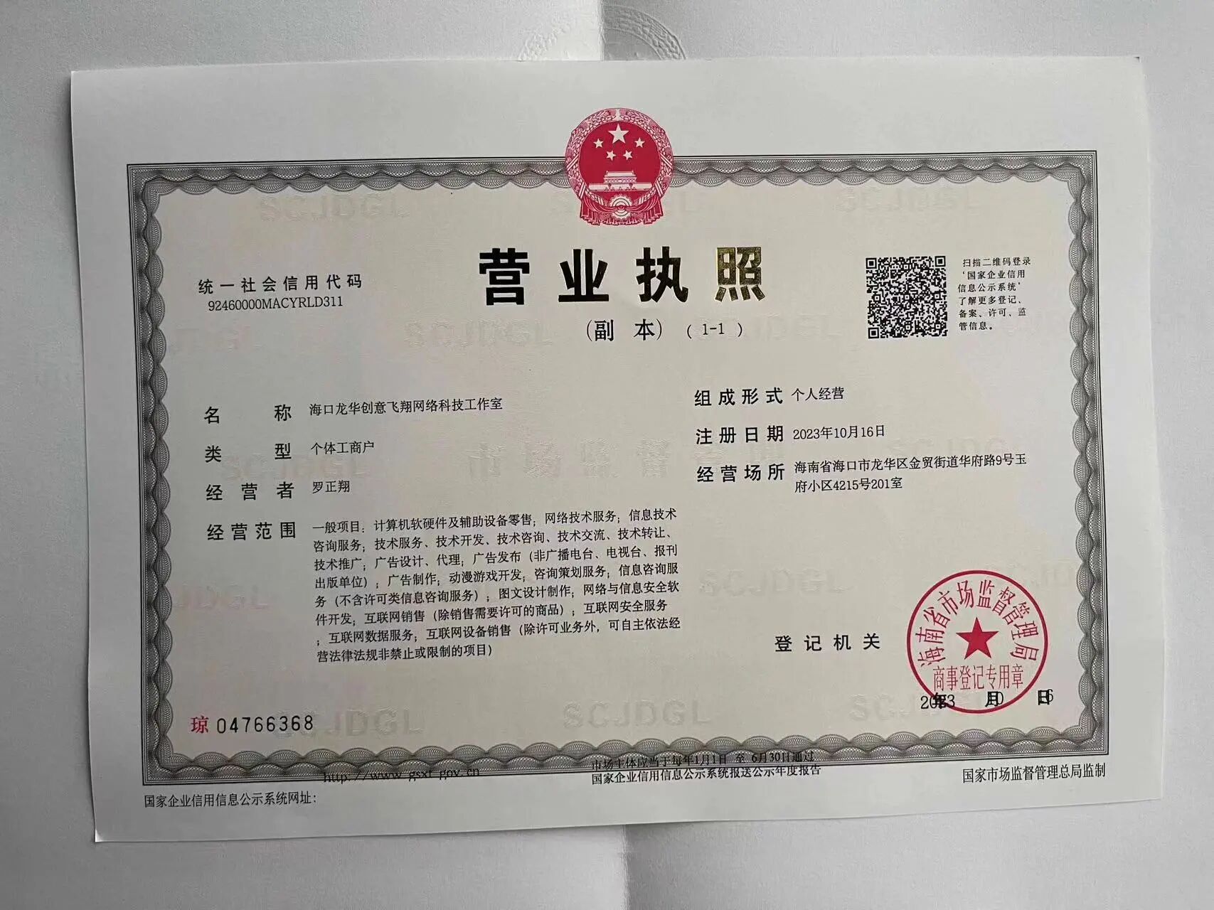 统一社会信用代码:92460000MACYRLD311