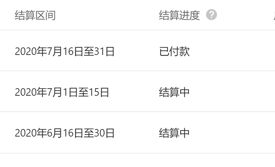 appid是wx19336874ca467110,6月下半月与7月上半月的一直结算中,也未收到款项,而7月下半月反而结算完成了。其他几个小程序也是一样情况。