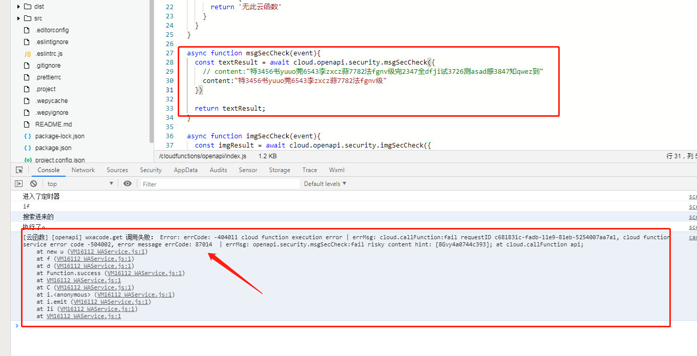返回结果为啥进入调用失败回调里面?不应该是返回json格式的响应结果吗,还是说我代码就有问题?如果返回结果就是这样,那么我岂不是要匹配字符串是否包含87014(内容含有违法违规内容)? 感觉不符合逻辑啊