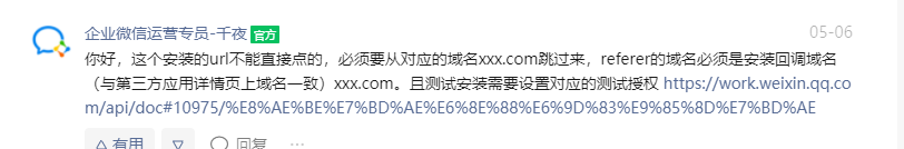 原因是我在生成企业授权链接的时候没有使用测试授权配置后的预授权码引起的!