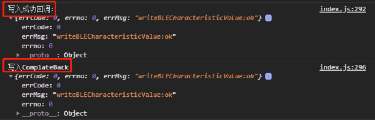 这里只会返回发送数据的成功或失败,具体的业务数据是在wx.onBLECharacteristicValueChange里监听的呀