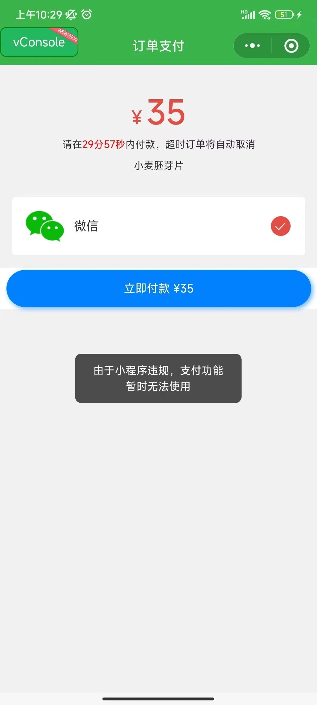 2、调用支付时,提示小程序违规,支付功能暂时无法使用