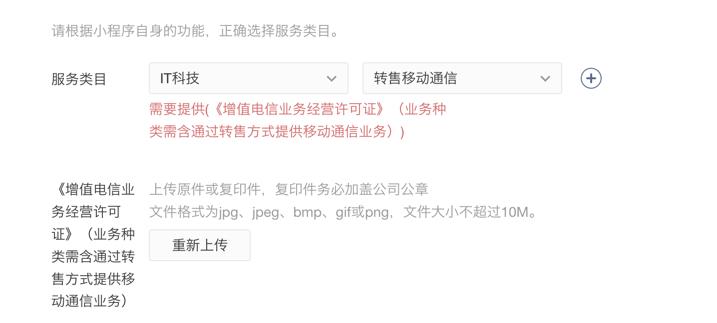 你好,申请或修改服务范围类目,可登陆微信公众平台-设置-服务类目点击详情修改