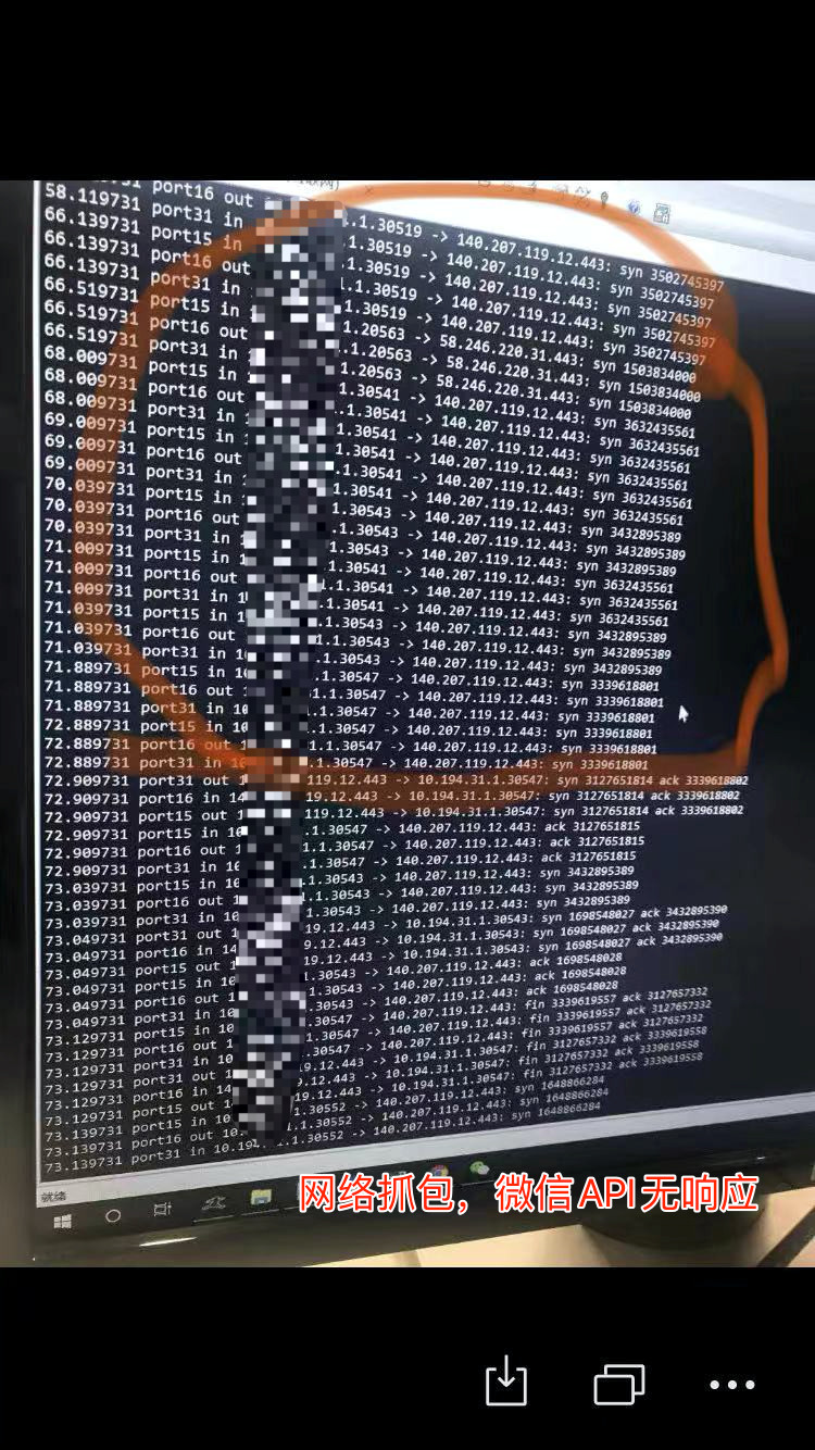 今天下午我们的服务号突然出现无法访问,我们是微信外接H5页面的,然后通过抓包发现,微信这边的服务器无法访问导致调用接口超时,涉及到责任界定问题,麻烦微信公众平台的各位大大给个回复。具体地址如下: