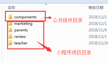 问题:假设我有A、B两个小程序项目,自定义了一个通用组件c,想在A和B两个项目中都可以用。现在是A、B两个项目中都放了个components目录,自己也尝试了下把components目录放到项目同级(如下右图),但是引入有报错(不排除是我路径写的有问题),请问下可以如下右图那样吗,如果不行的话有什么其他的方法可以实现多项目组件复用(排除第三方框架mpvue之类的)。
