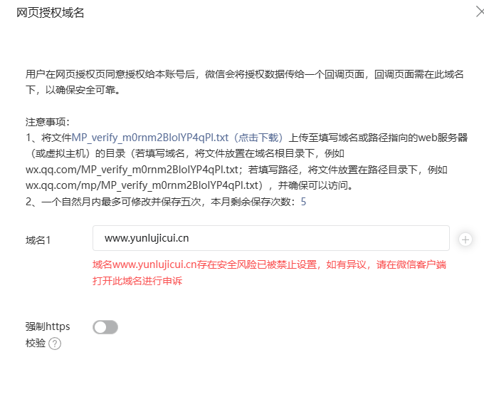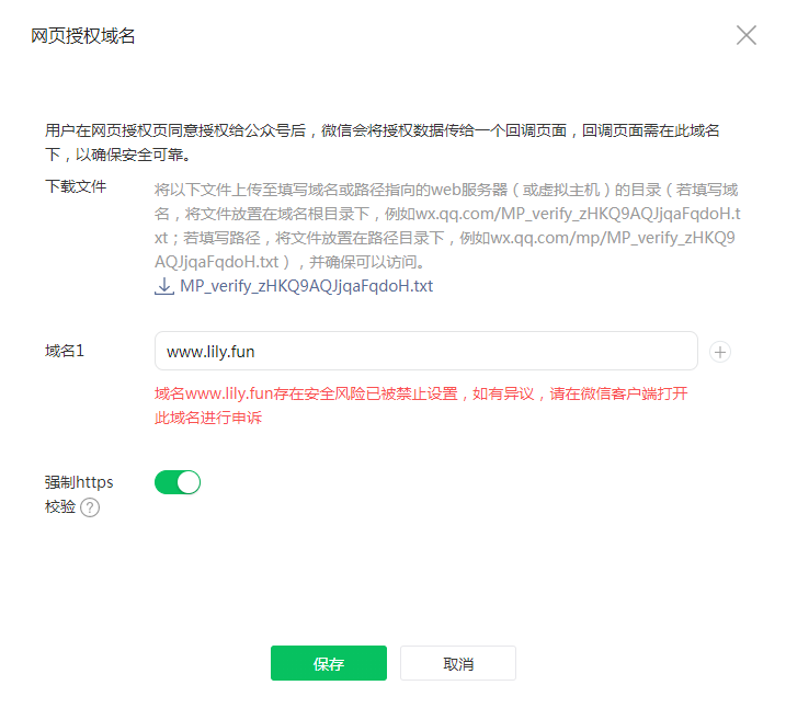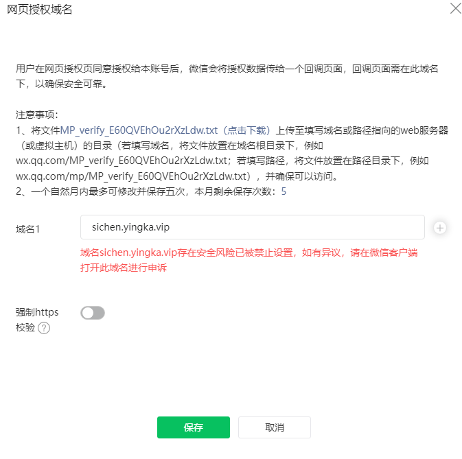 域名 sichen.yingka.vip 已经备案,网页授权域名不能保存