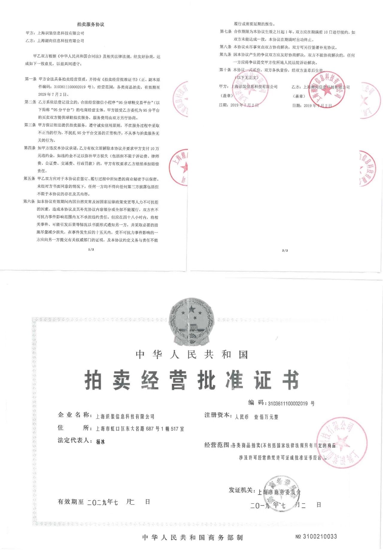 以上是识装公司的拍卖资质和给到95分球鞋交易平台授权拍卖的证明,但是没有通过审核,在法律上其实依据此协议95分球鞋交易平台所属方上海潮向公司是有开设拍卖服务资格的,这种情况应该如何通过审核?