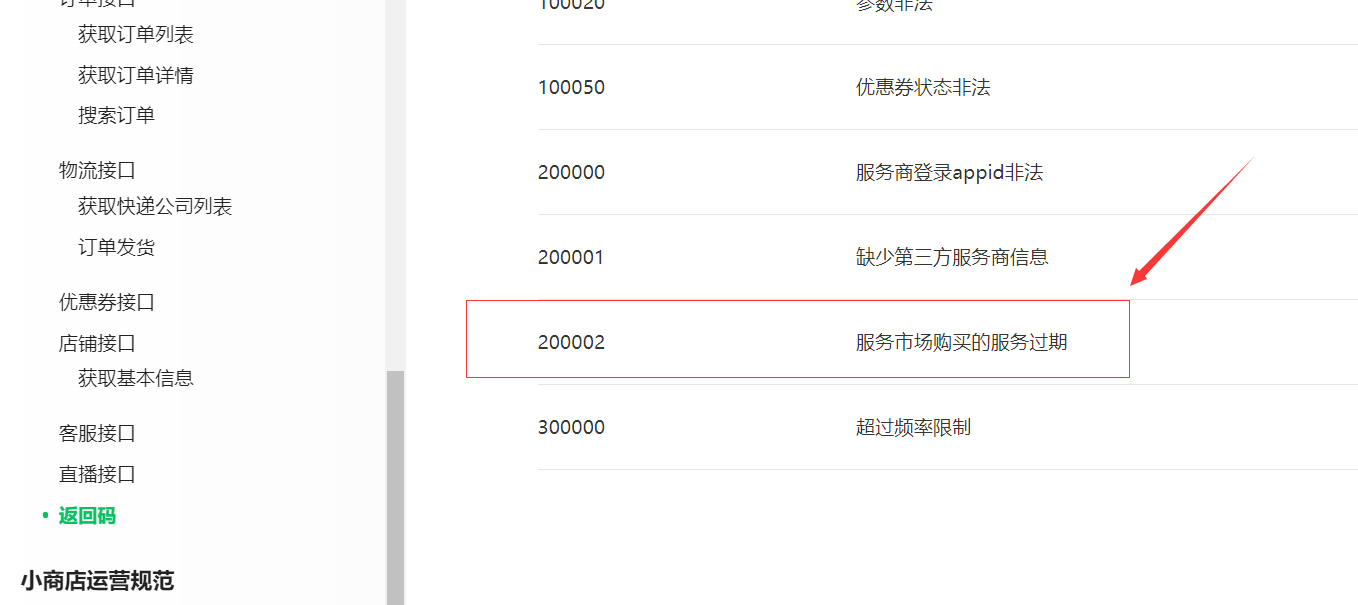 微信小商店服务商接口,现在调用获取用户购买的在有效期内的服务列表接口是可以正常获取到的,但是获取商品或是订单的接口都是返回200002。官方给出错误码是服务市场购买的服务过期。但是我看购买的服务12月1号才过期。现在不知道是什么问题,哪位大神帮忙解答下。以下调用接口和文档及参数: