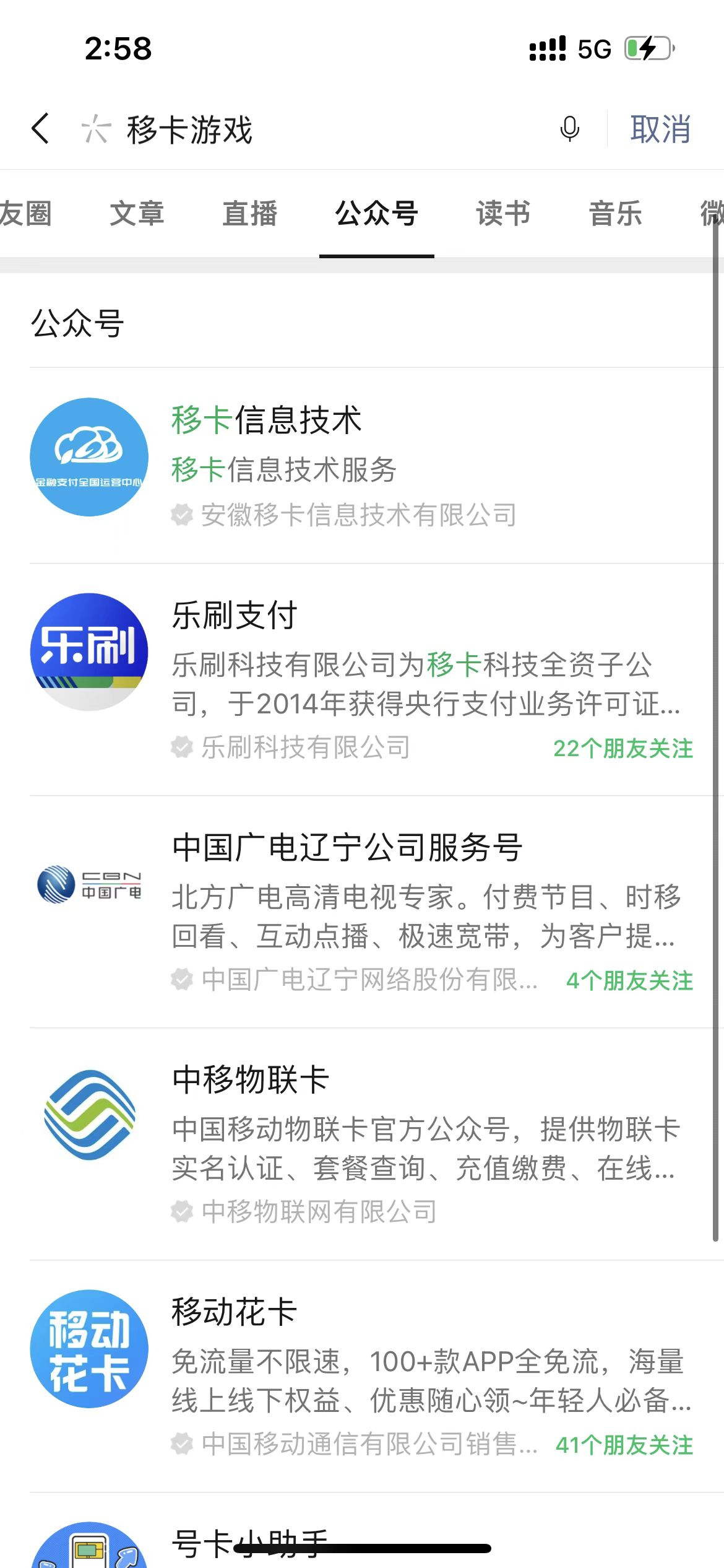 【反馈】公众号“移卡游戏”在搜一搜里面搜索不出现。 如下图所示: