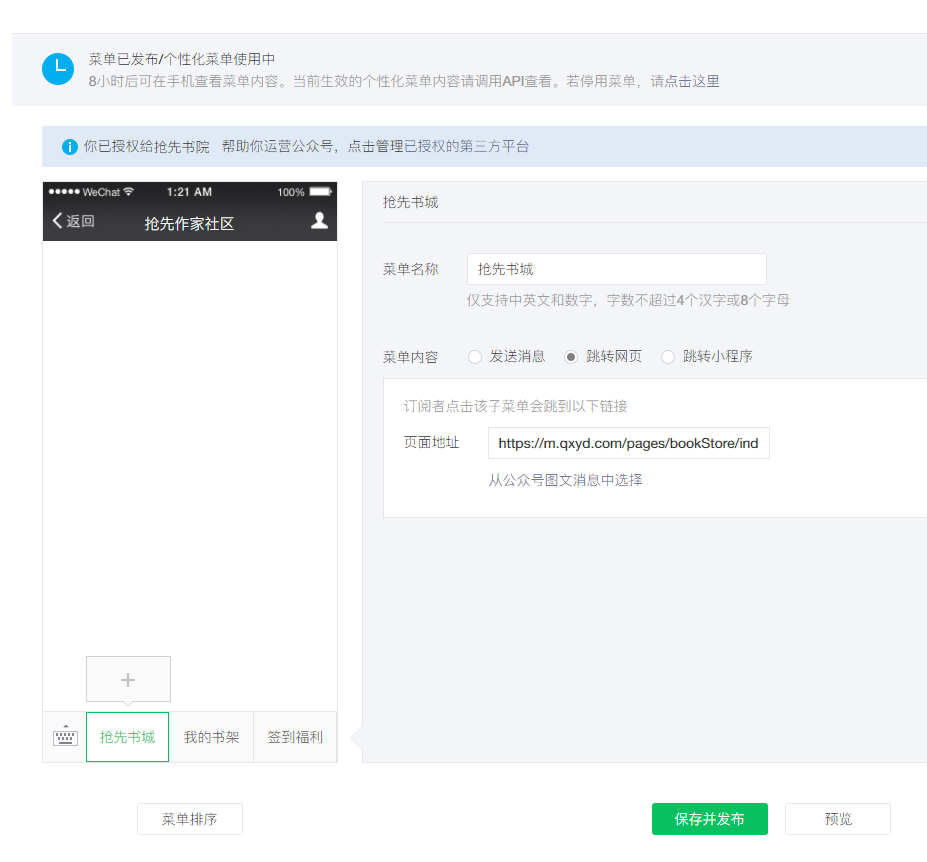 修改菜单后,用户会在24小时之内刷新菜单。取消关注并重新关注会即时刷新。