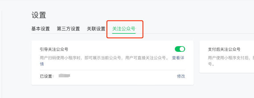 目前只能选择设置展示一个公众号(在 小程序后台 -> 设置 -> 关注公众号 里面设置),设置的公众号需与小程序为同主体或关联主体。