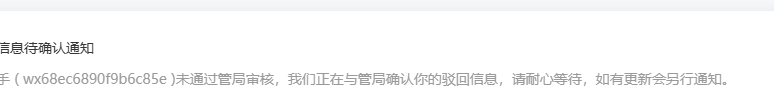 你好,平台目前在协同监管部门确认驳回原因及整改建议,确认完后才会退回,辛苦耐心等待,后续可以留意站内信通知,驳回都有明确原因和修改指引的。
