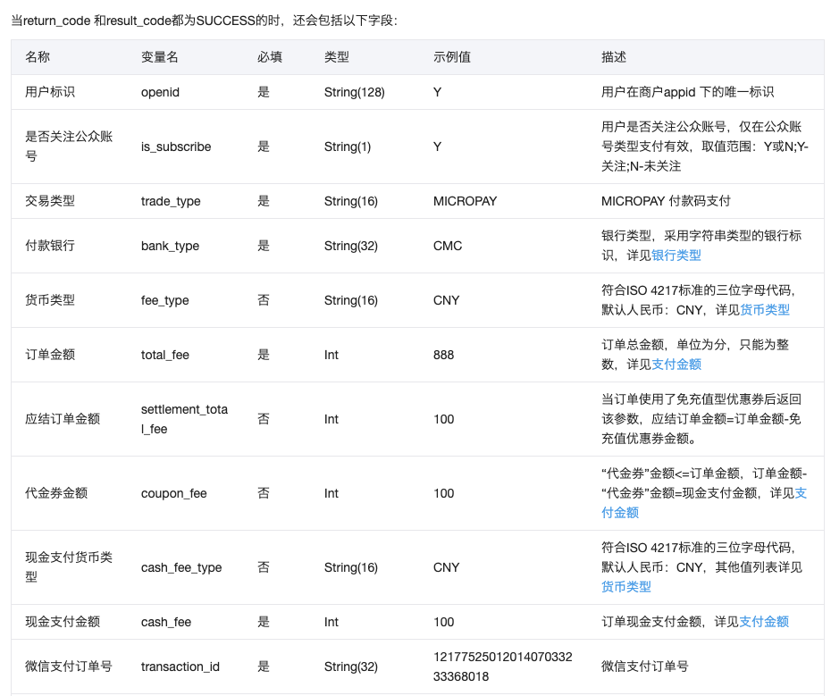 返回的结果 return_code 和result_code都为SUCCESS