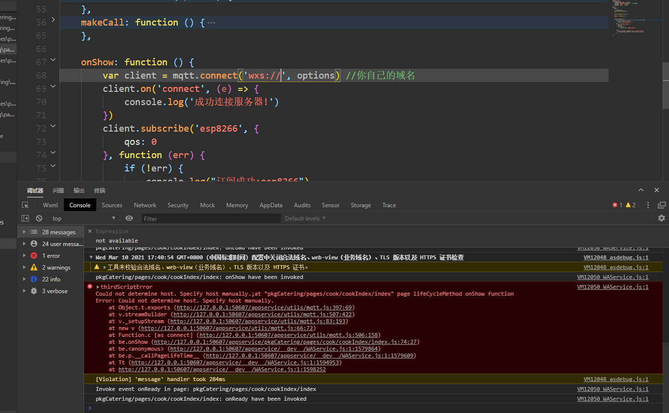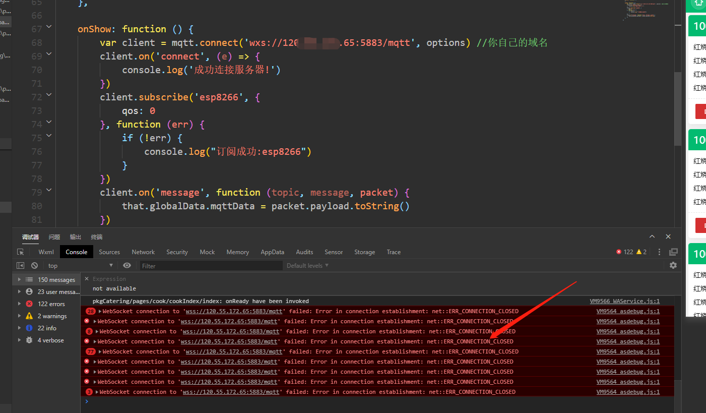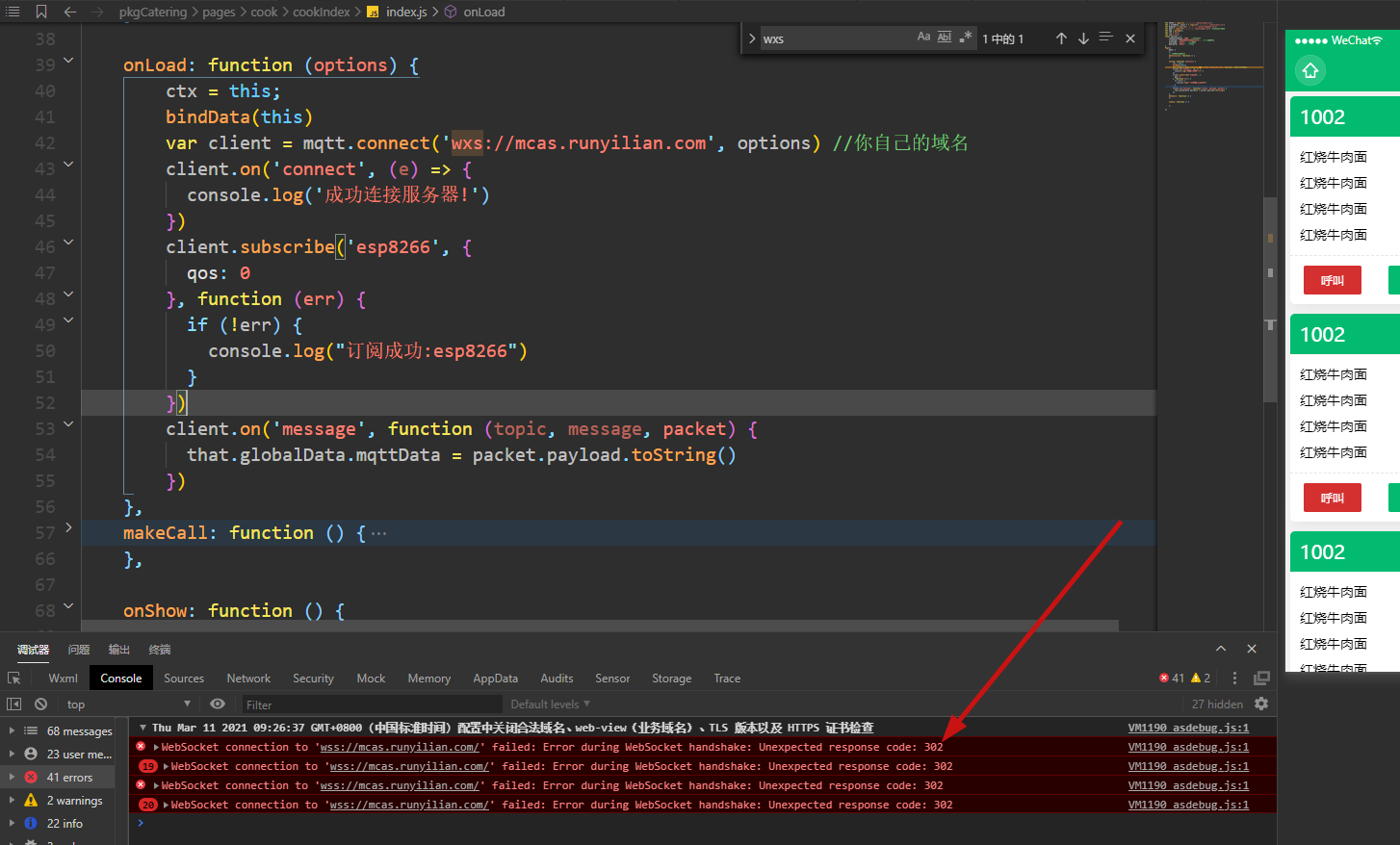 你上面写的连接是 wxs,但是报错的连接却是wss