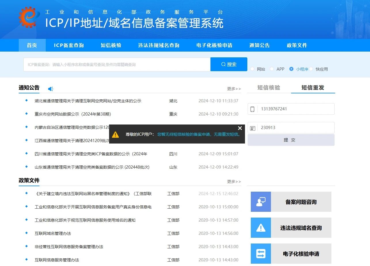 尊敬的微信团队:我工作室提交的小程序已经15天了,手机号正常,没有停机情况,短信也没有拦截,但未收到工信部的验证信息。我联系了河南通信管理局,相关管理人员表示您的小程序备案信息尚未到达通信管理局。请您帮我核实一下具体情况。之前备案过的几个小程序都很正常,这次已经过去10多天了。