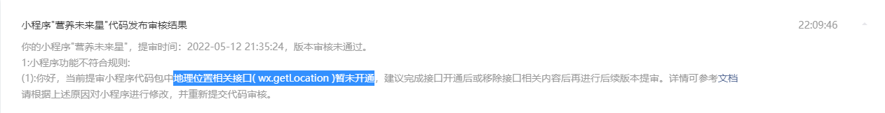 代码审核失败,项目中没有使用getlocation接口。却一直审核失败。