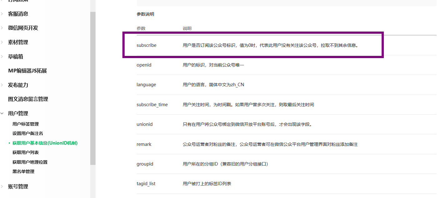 还是用过获取用户信息:https://developers.weixin.qq.com/doc/offiaccount/User_Management/Get_users_basic_information_UnionID.html#UinonId,返回的关注参数判断的