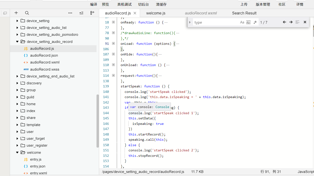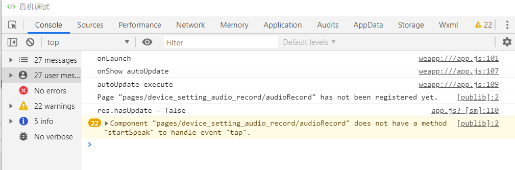 然后启动真机调试模式,在手机上点击相同按钮,一直提示没有这个函数