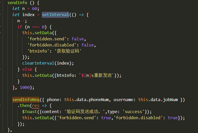 是这样,我想做一个短信验证,当发送了一个验证码以后,60s之后才能再次发送。