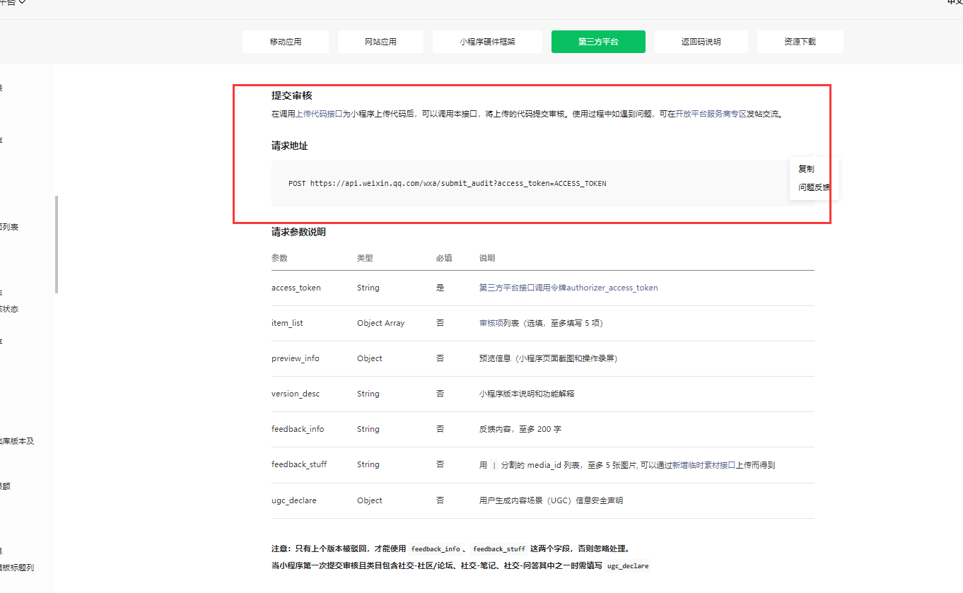 以及,也可以通过接口https://developers.weixin.qq.com/doc/oplatform/Third-party_Platforms/Mini_Programs/code/get_latest_auditstatus.html继续查看结果哈。