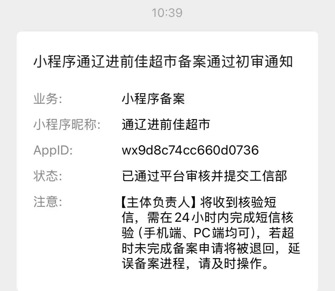 微信小程序备案,现在显示的状态是已通过平台审核并提交工信部。 提示主体负责人将收到核验短信,需在24小时内完成短信核验。 主体负责人指的是营业执照法人?还是小程序运营者?