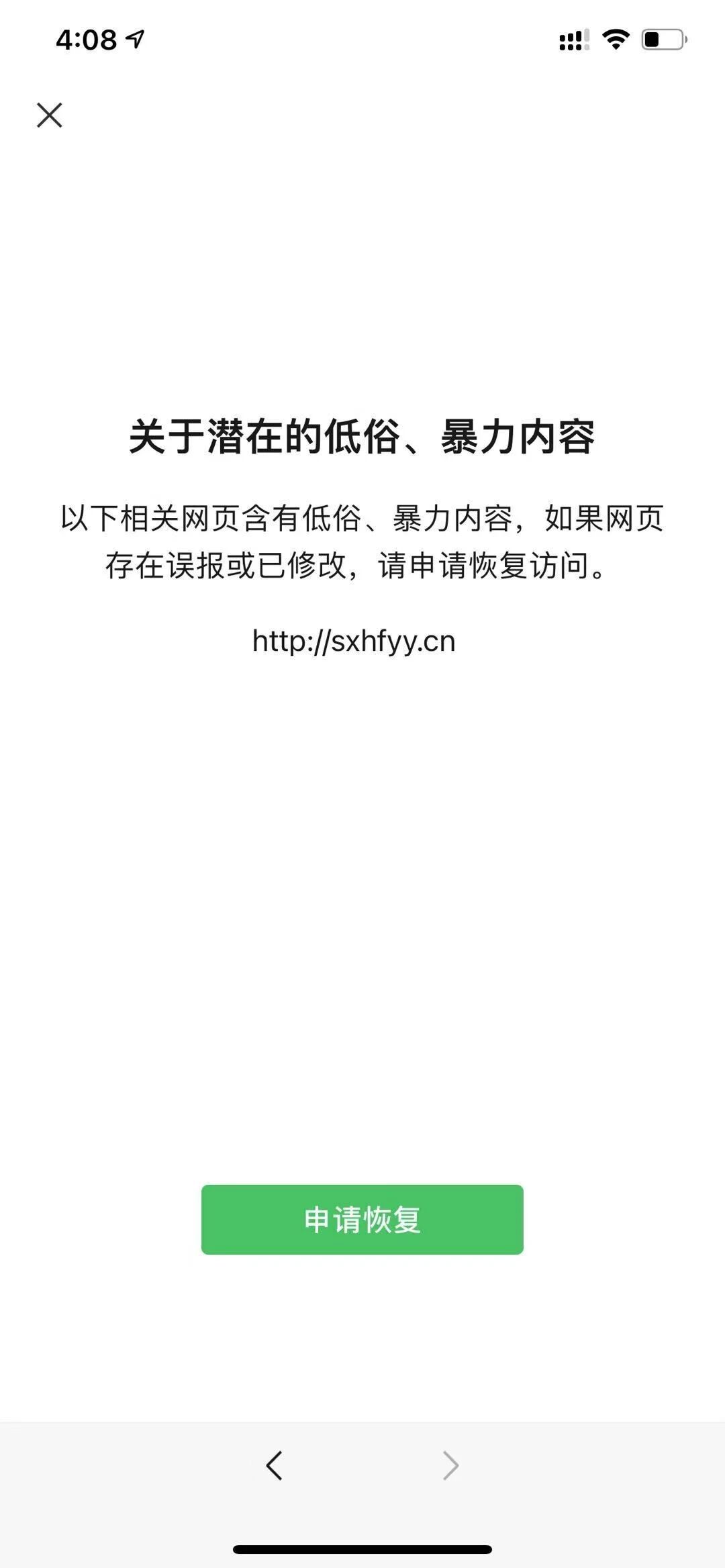 sxhfyy.cn微信提示网站存在非法链接,检查网站未发现网站内有此链接,应该是被微信误判。