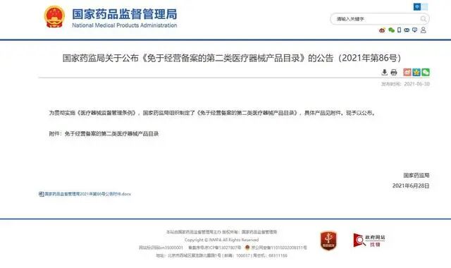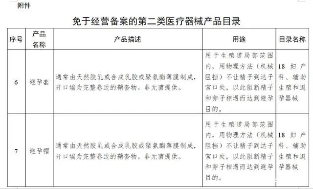 2021年6月28日,国家药品监督管理局发布国药监局关于公布《免于经营备案的第二类医疗器械产品目录》的公告(2021年第86号),其中,避孕套被纳入名录,正式成为免于经营备案的二类医疗器械产品之一。