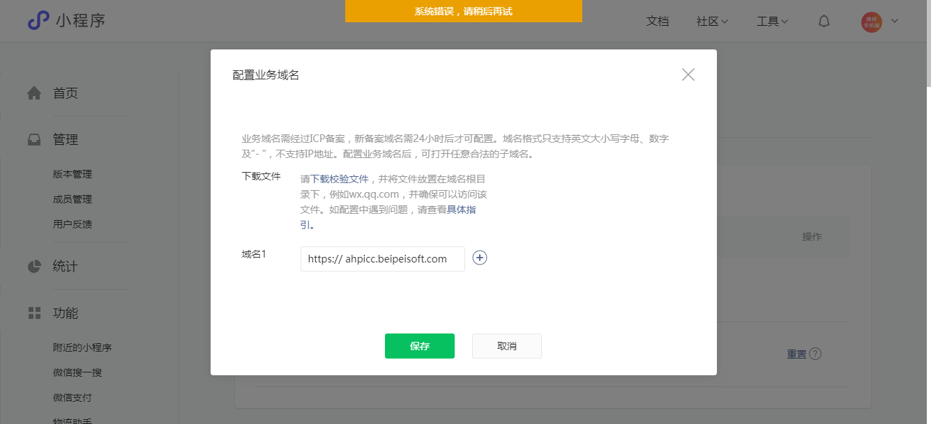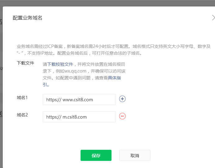 开发设置-业务域名填写网址后保存不了,有遇到这样问题的吗?