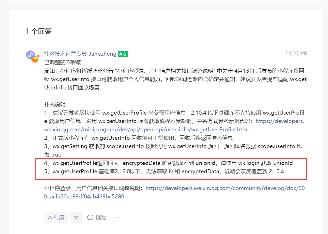 5、wx.getUserProfile 基础库2.16.0以下,无法获取 iv 和 encryptedData,近期会灰度覆盖到 2.10.4