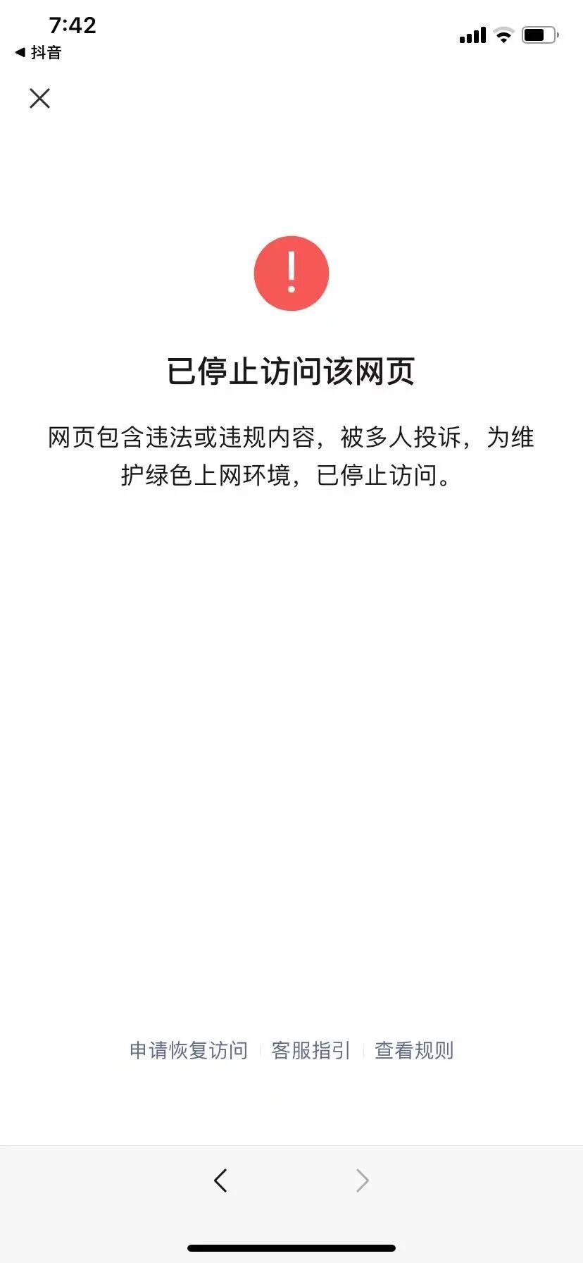 删除违规页面及内容,然后点击下方“申请恢复访问”,邀请几个好友也帮忙点一下,一般情况下都能恢复。