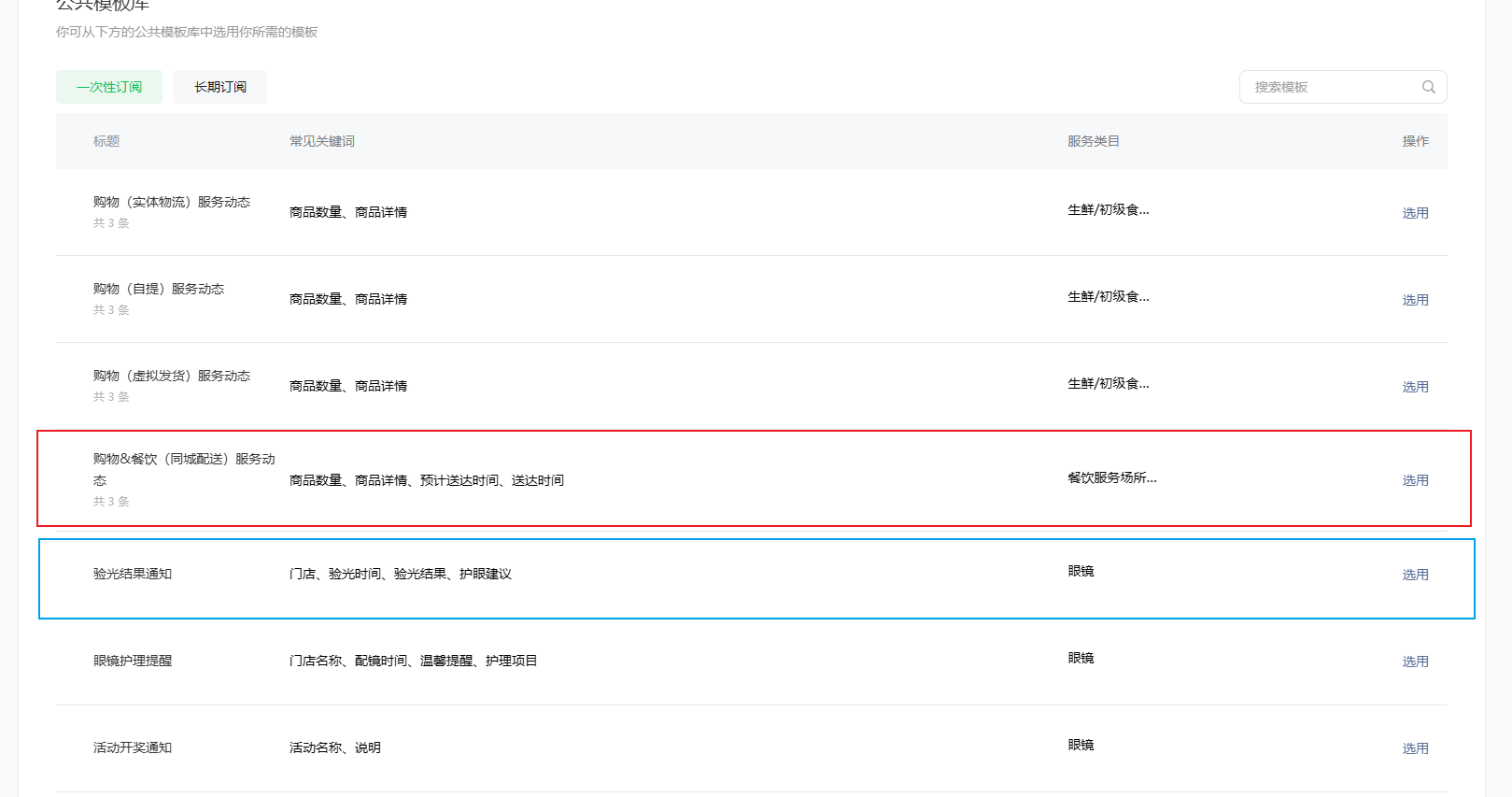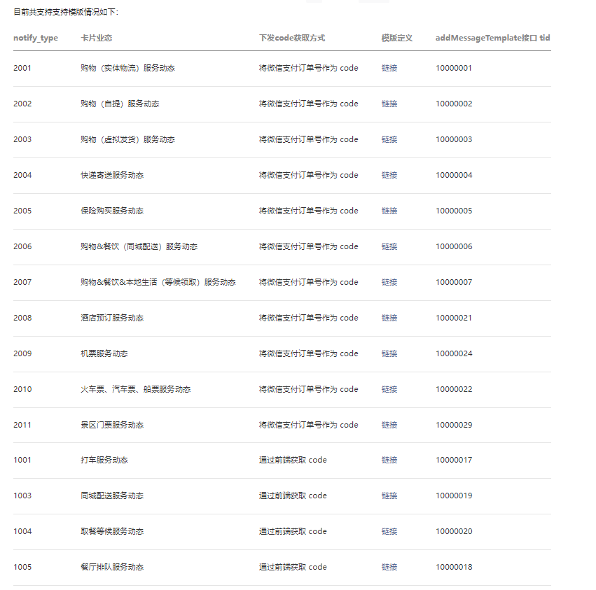 需要注意的是,添加此类模版后,模版id不支持通过原方式进行订阅与下发,请勿通过wx.requestSubscribeMessage向用户申请订阅该模版。
