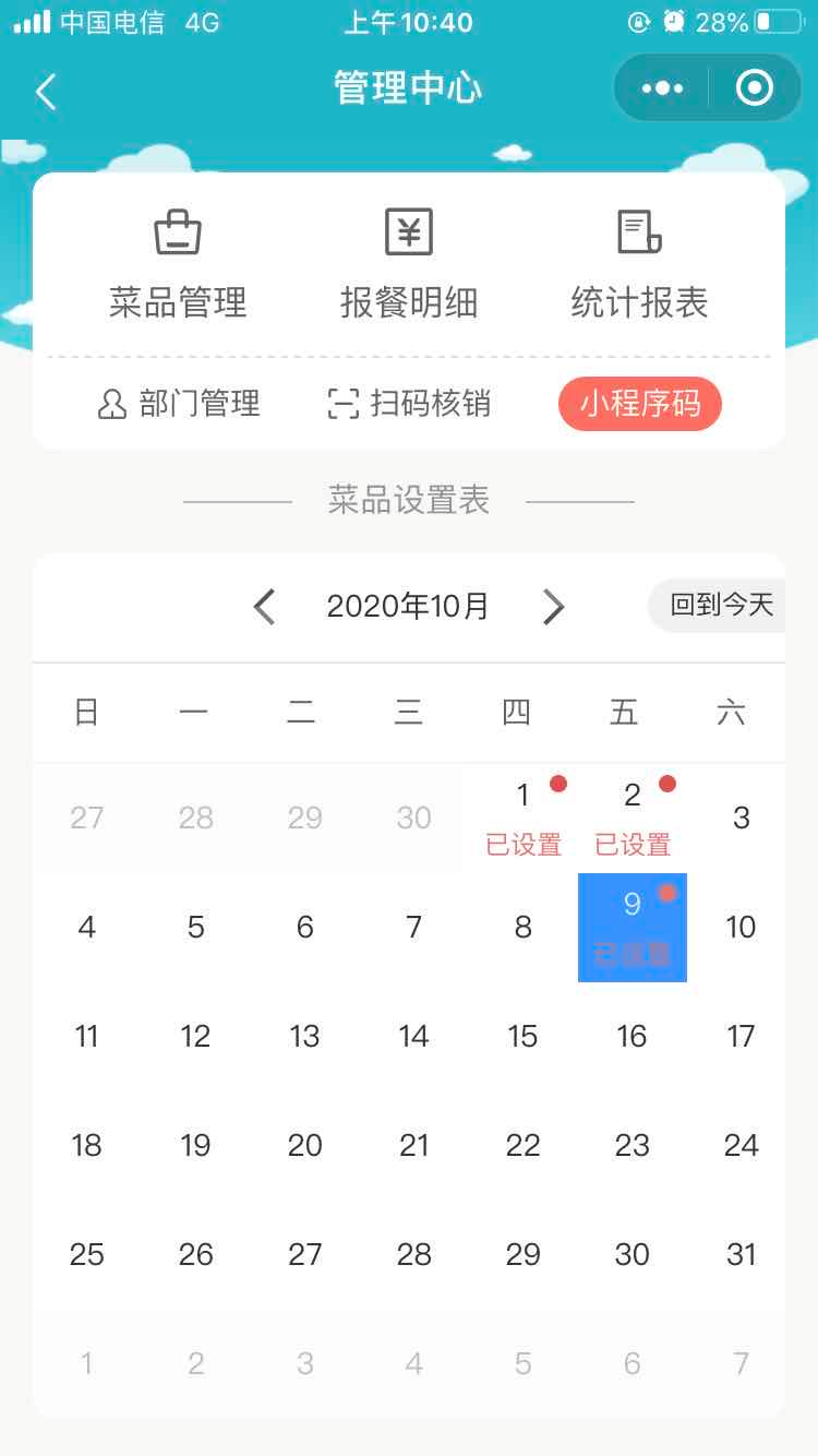 - 管理员可以自己设置部门机构、菜品基本信息、菜品安排。