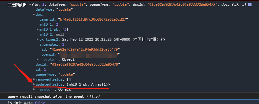 .updatedFields.mhID_2并不总是存在,如果数据里没有被修改的内容,它就不存在,如果有修改的,则判断是不是mhID_2。