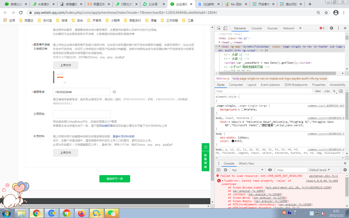 从公众号申请微信支付服务商点击保存,页面不跳转,代码报错