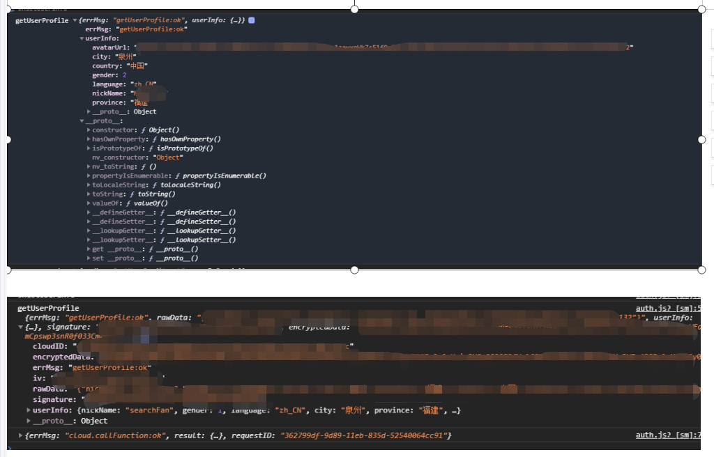 上面为苹果,下面为安卓,调用wx.getUserProfile的结果
