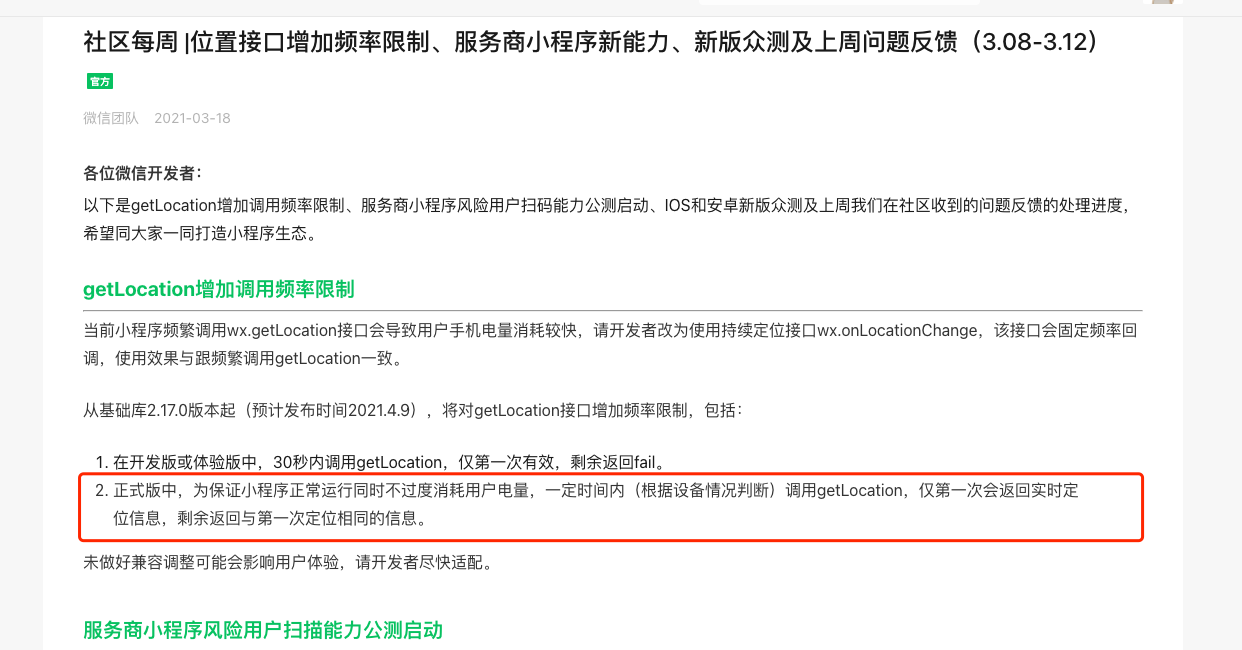 你好,你的小程序“月亮天使CRM”申请的wx.onLocationChange接口因你所描述的小程序接口使用场景,目前未符合接入wx.onLocationChange(监听实时地理位置变化事件)接口的开放范围审核不通过,建议修改后重新提交。