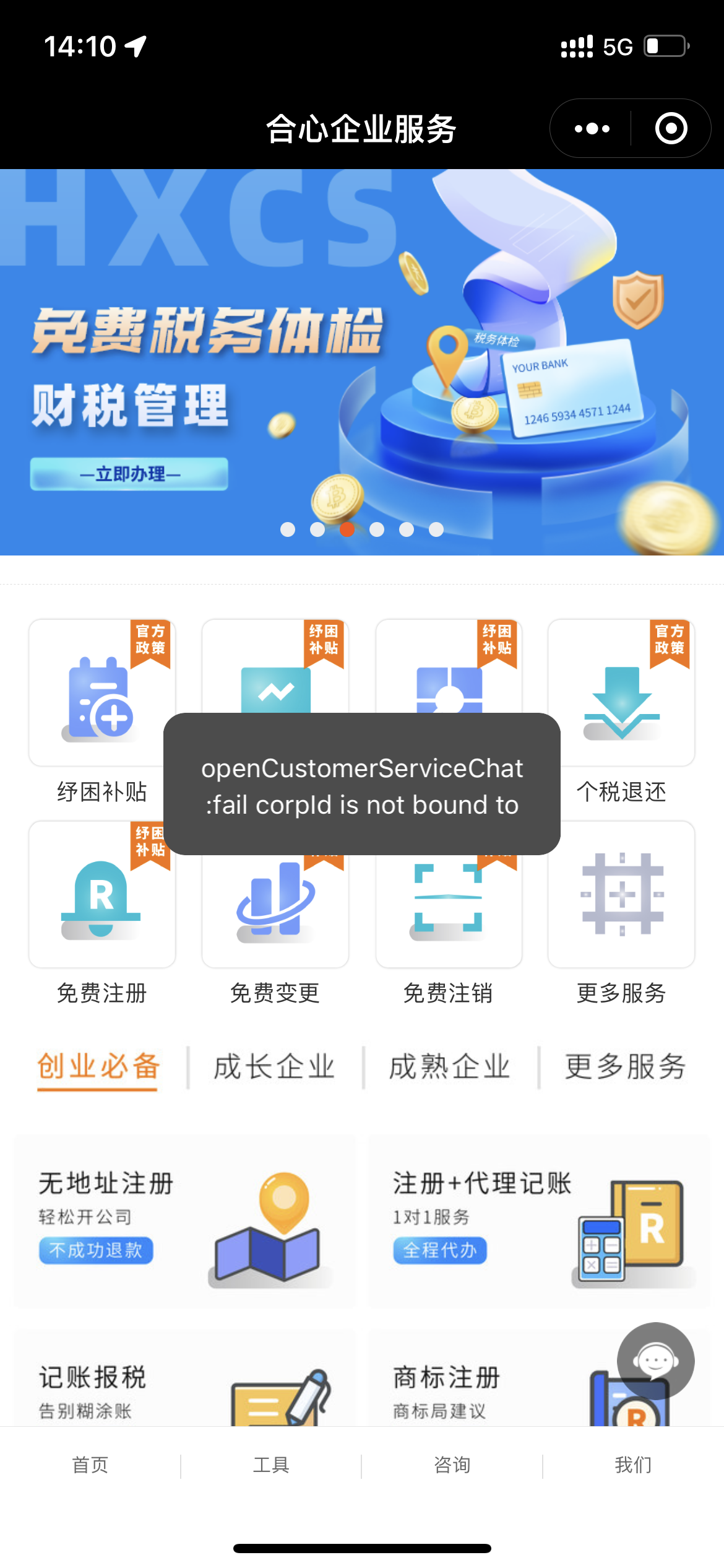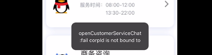 {errCode: 6, errMsg: "openCustomerServiceChat:fail corpId is not bound to current miniprogram"}