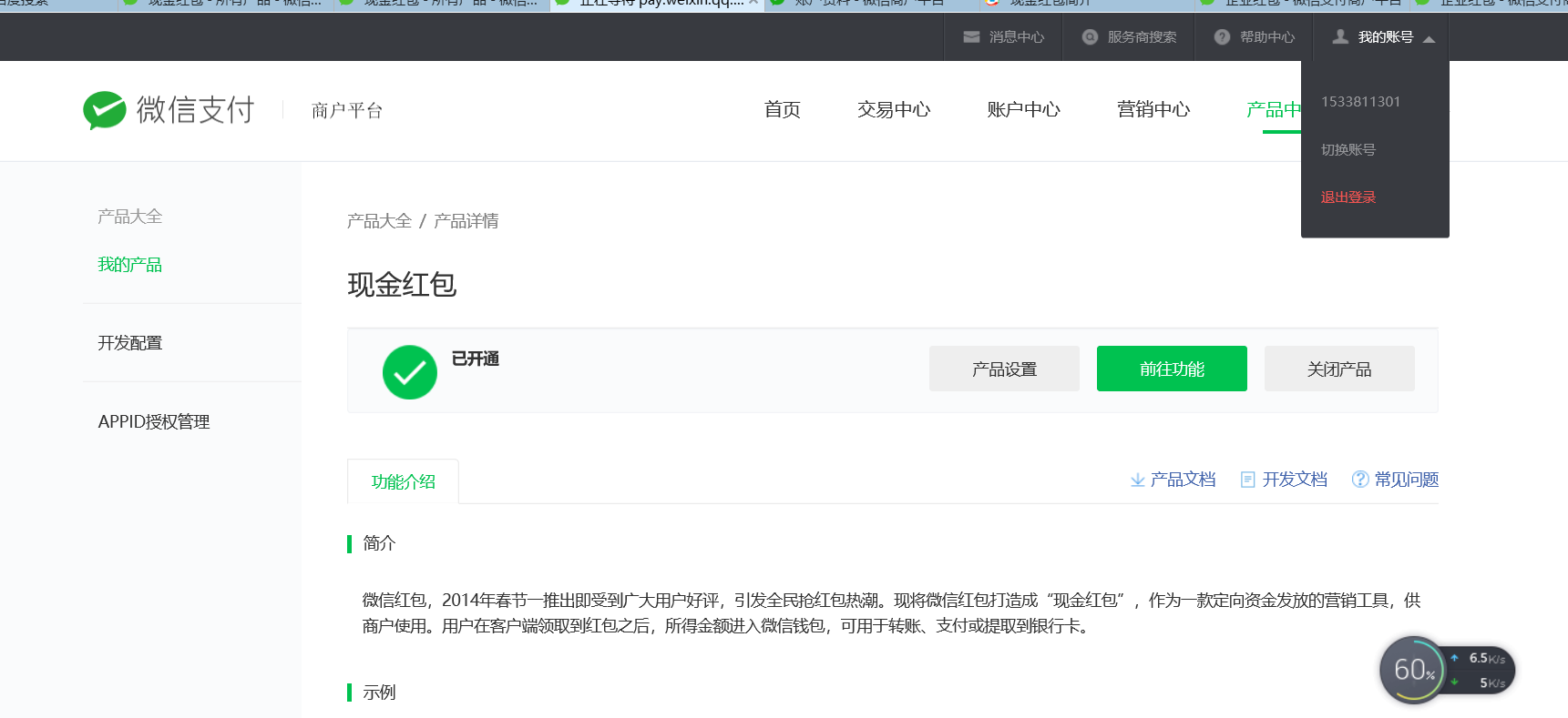 "err_code_des": "你的商户号未开通该产品权限,请联系管理员到产品中心开通。开通路径:产品中心-产品大全-现金红包-申请开通",