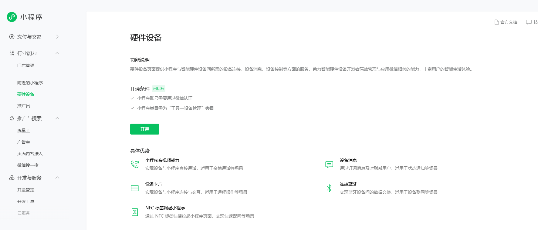 设备订阅消息仅供硬件设备使用,需要先申请接入硬件,硬件审核通过后才能开通权限。