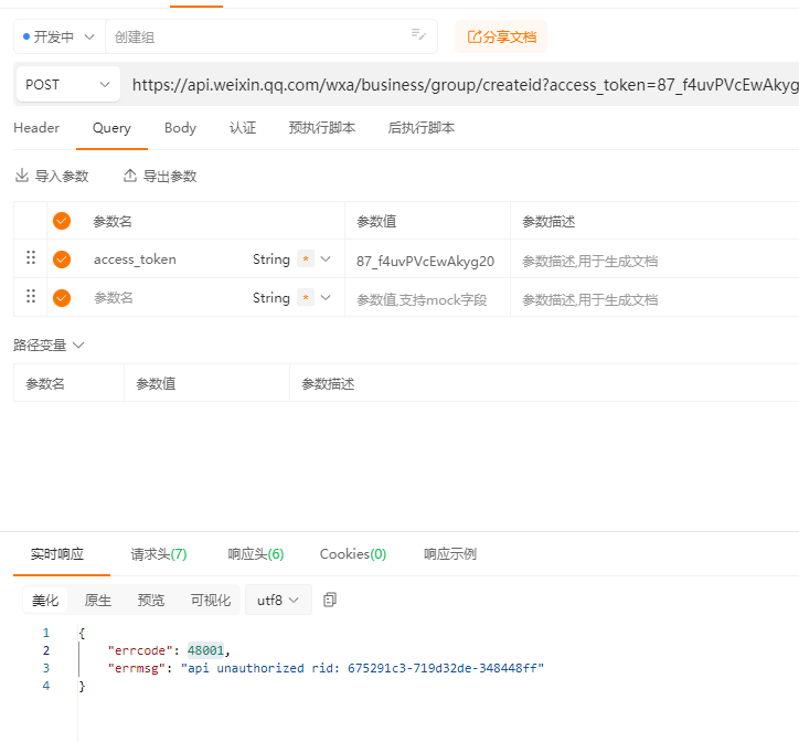 errmsg: "api unauthorized rid: 6752a24b-4b5850e4-0e9825ef",
