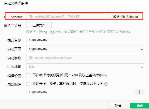 在微信开发者工具中, 只有小程序页面路径和二维码编译入口, 没有短链接编译入口, 如何解析出短链接里面带的参数. 短链接地址示例: #小程序://小程序示例/示例页面/9pZvnVw3KMCQpVp