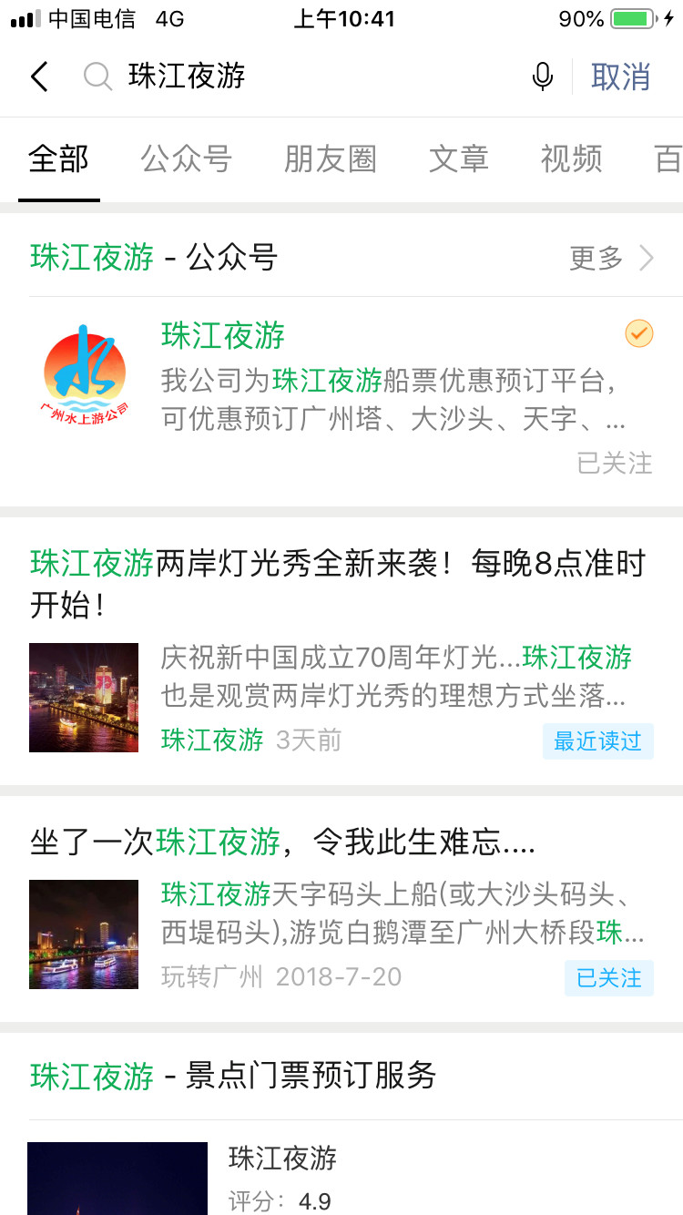 在微信“搜一搜”及小程序搜索里都搜索不到“珠江夜游”、“珠江游”、“珠江夜游船票”、“珠江游”、“广州珠江游”等关键词的小程序?