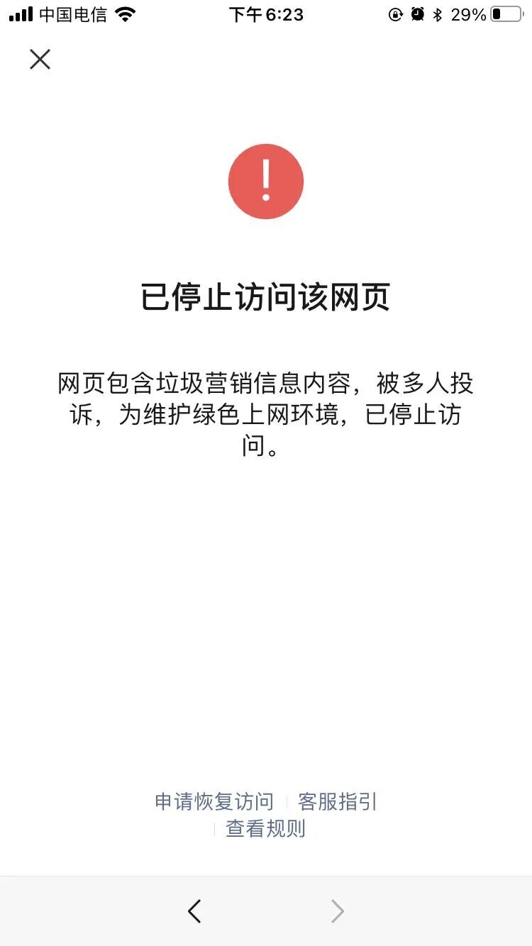 各位老师,我们自研的视频新闻资讯app近期出现被封禁的问题,近期封禁有部分h5页面都被停止访问了,经我们排查没有出现引导分享的内容,并且是先弹出封禁页面随后又加载出正常的页面,麻烦问下原因,谢谢。
