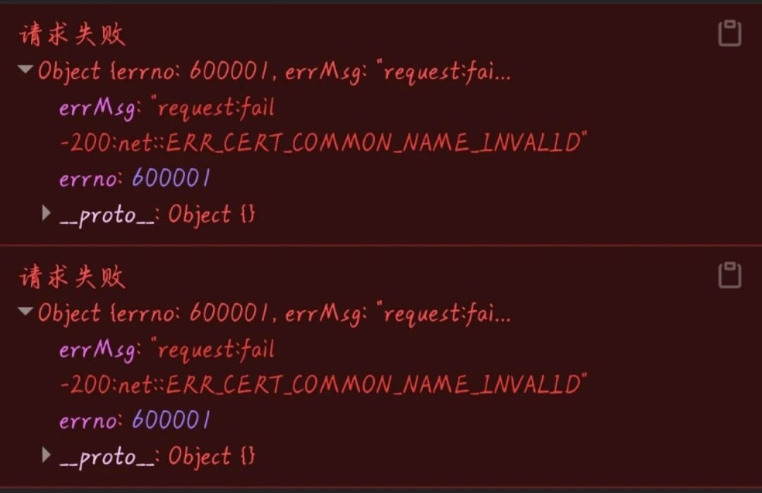 通过点击一个按钮,小程序前端使用Ajax技术向后端发出查询请求,现在前端可以正确发出请求,但是后台接受不到 报错600001,好像是域名认证的问题,我上报合法域名已经一天多了,还是这样,请问该如何解决