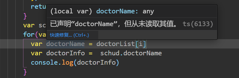 可以的,你第二幅图显示那个提示不用管,这个提示只是告诉你doctorName被赋值后一直后没有被调用过,因为你下一行调用的是schud.doctoeName,是schud这个对象里面的值,而你定义的doctorName是一个单独的值,目前从你图片中看来并不属于任何人