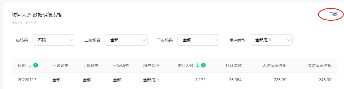 该页面下载访问来源 数据明细表格,总是提示下载数据失败,功能不正常,重试多次,依然是该提示。