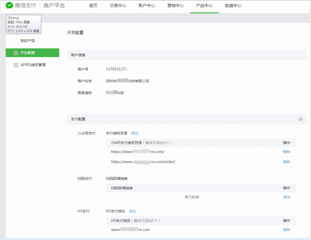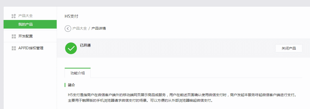 但是我们的商户平台的产品中心有开通H5支付啊,请问问题在哪?谢谢先!