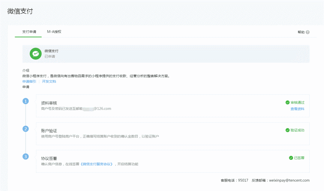 看起来一切正常,除了小程序里面的商户号和微信开放平台的商户号不一样。
