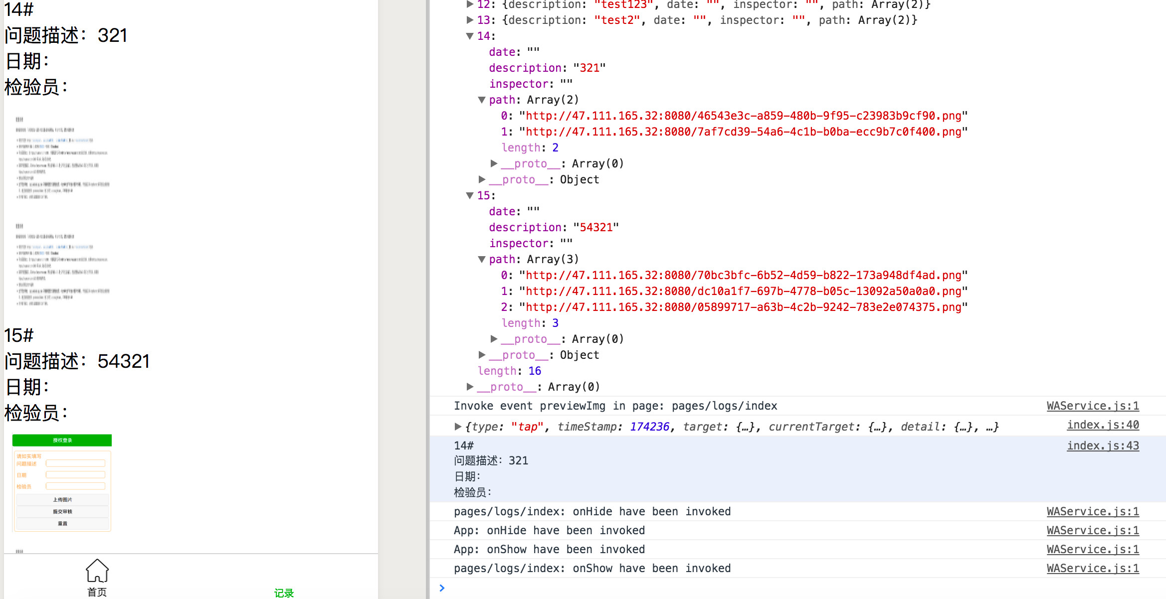 上面是查询返回的数据,下面是预览方法,为什么14#图片可以预览,15#不能