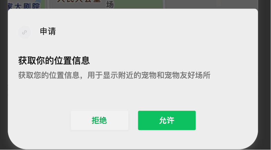 "desc": "获取您的位置信息,用于显示附近的宠物和宠物友好场所"